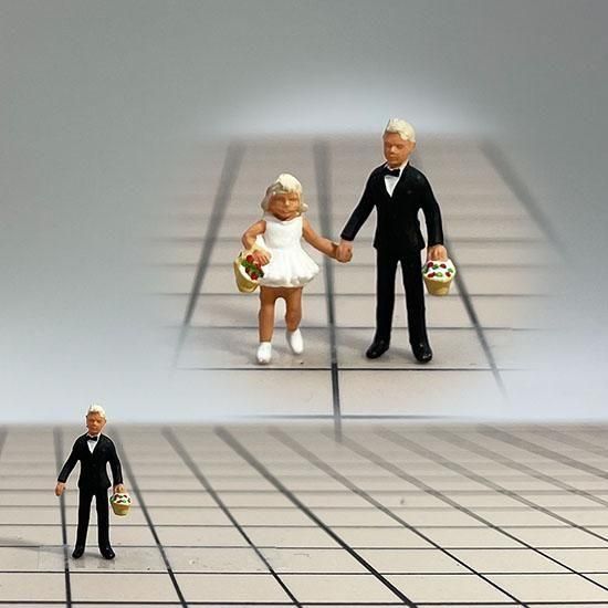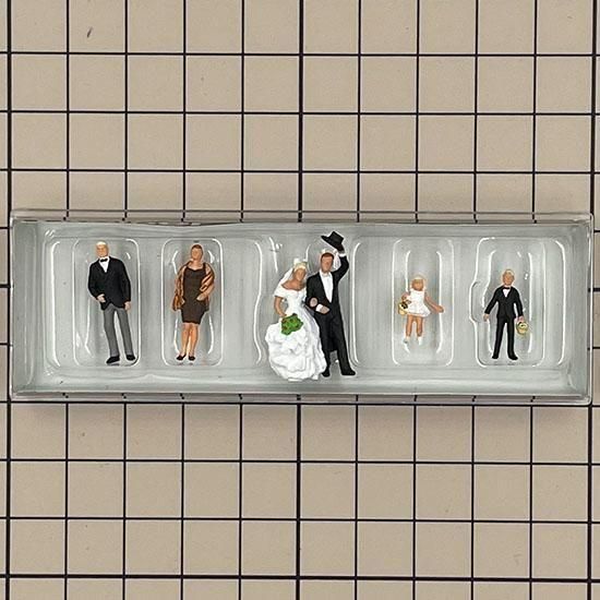 ハッピーウェディング!腕を組んで登場した新郎・新婦のフィギュアに、ゲストカップル、そして何より小さくてキュートなフラワーガールとフラワーボーイまでセットになったオススメの結婚式フィギュアです。