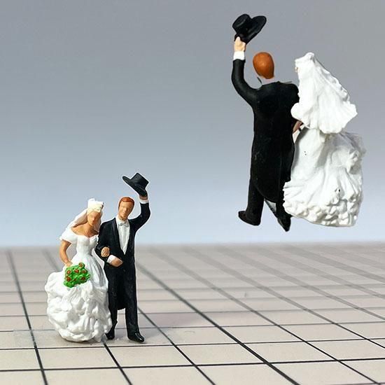 新郎新婦は、1セット(1体)のフィギュアで切り離せません!紳士のハットも固定されています。優しくお取り扱いください。