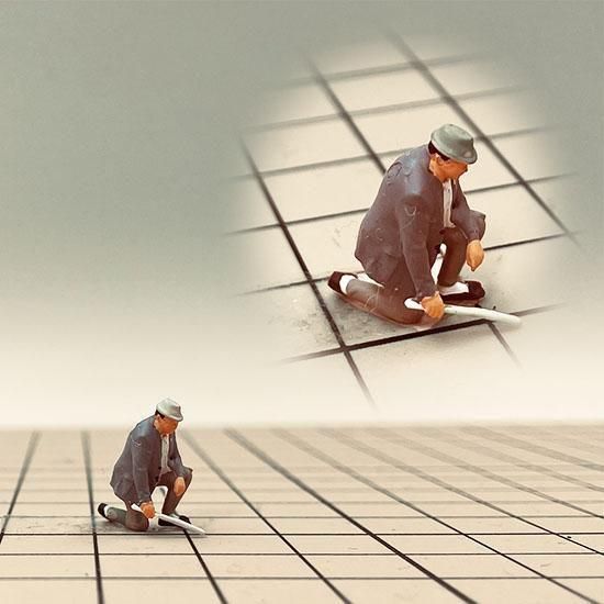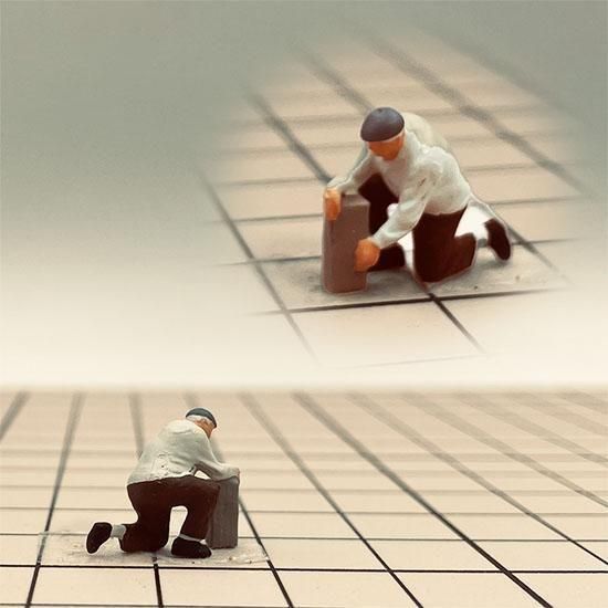 片膝を立てて、作業するひとx2