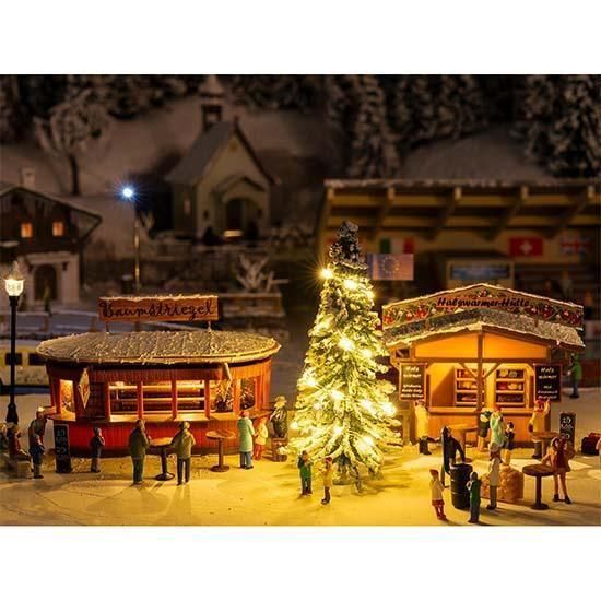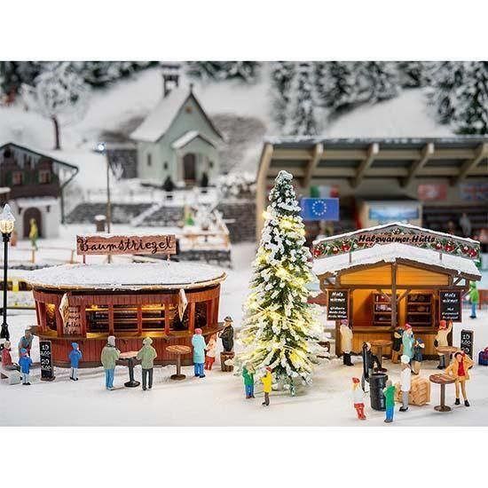クリスマスマーケットの売店(x2)とそのアクセサリ、そしてLEDで電飾するクリスマスツリーのキットモデルです