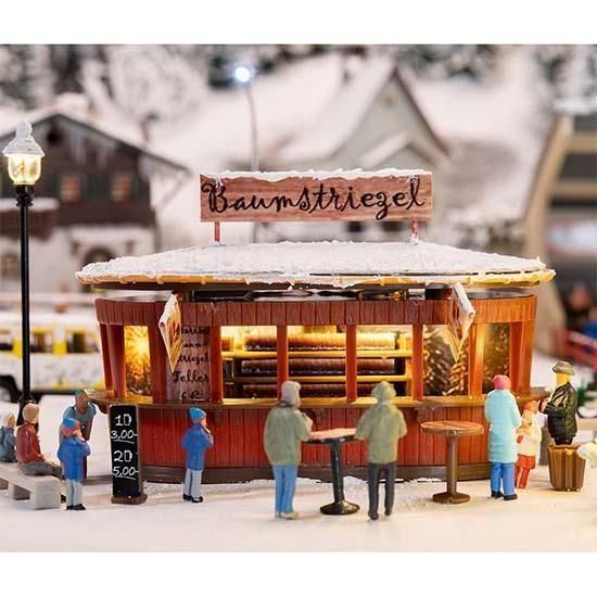お馴染みの焼き菓子Baumstriezelを売るスタンドや